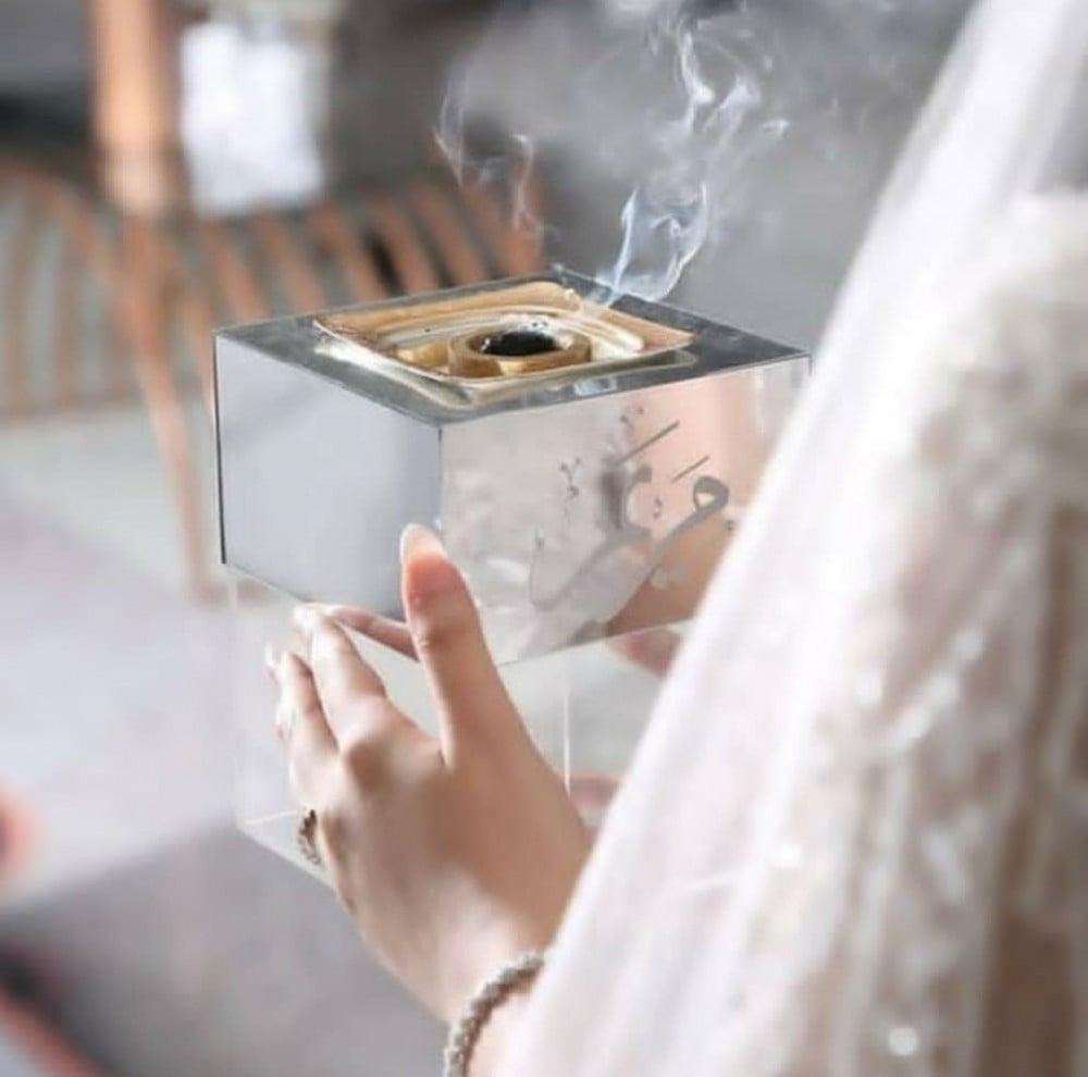 تصميم بسيط بلون فضي عاكس ليحاكي المرآة.مبخرة مرايا انيقة و بسيطه تضيف لمسة هادئة لديكور منزلك.يتم نحت الاسم بدقة متناهية على المبخرة لتضيف طابع خاص بك.المقاس:الإرتفاع : 18 سمالطول : 13سمالعرض : 13 سم