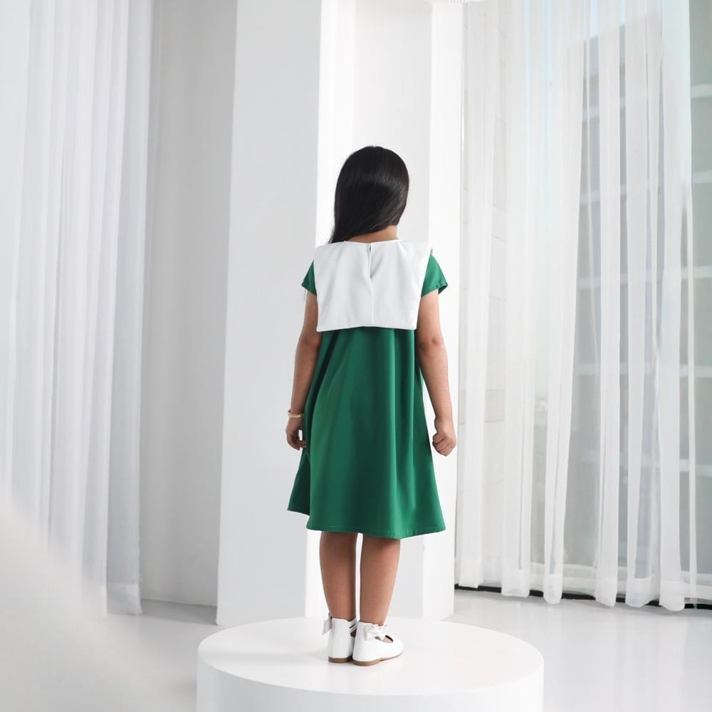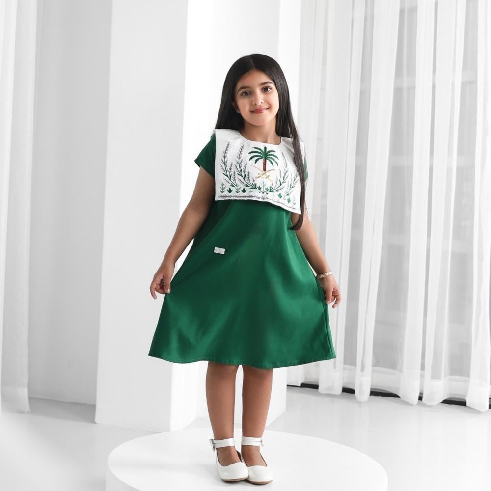 بلون اخضر مع وشاح ابيض مطرز بنقشة فريدة