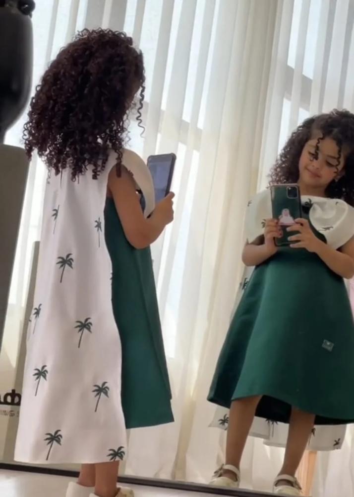 فستان اليوم الوطني اخضر بتشكيله انيقه وحصريه