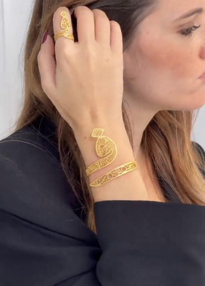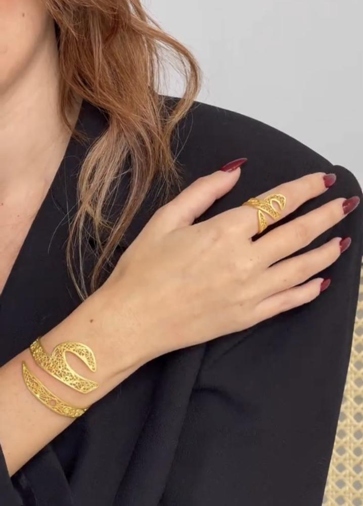 اسوارة وخاتم مطلي بالذهب بشكل جديد 2025