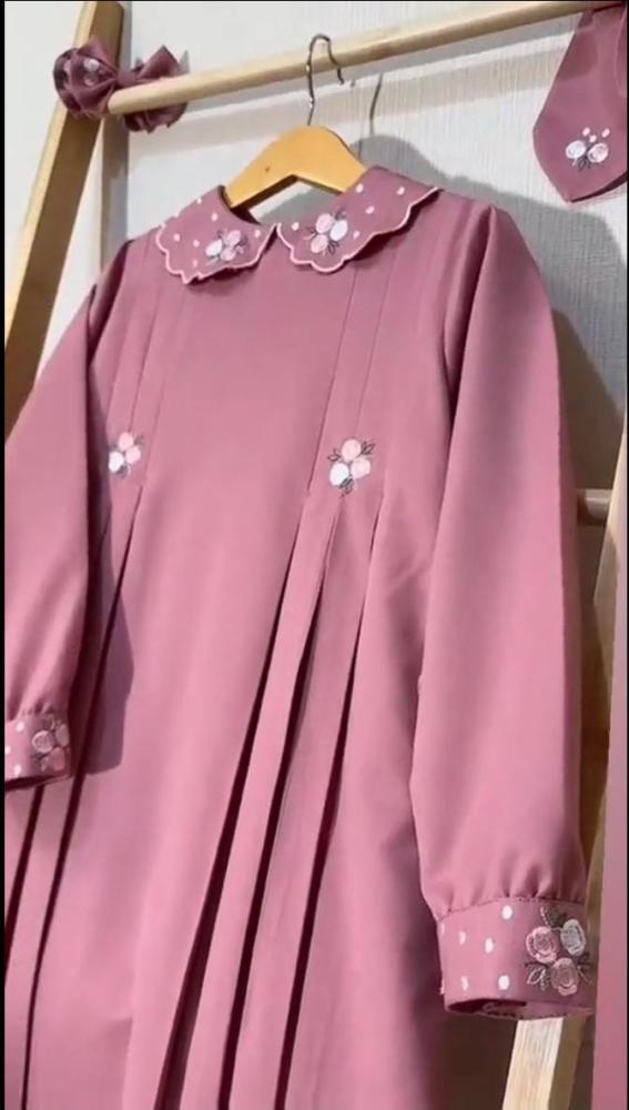مريول مدرسي مع تطريز النقش الانيق، تفصّيل بدقة ليناسب طفلتك